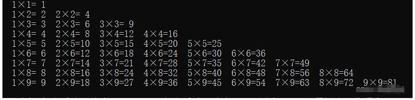 这个程序就很简单了,只需要两个for循环就能后解决了,一个for循环用来控制行的范围,另一个for循环来控制列的范围,然后对数值进行打印就可以了。