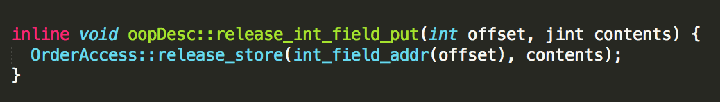 内部的赋值动作被包了一层, OrderAccess::release_store 究竟做了魔法,可以让其它线程读到变量i的最新值。