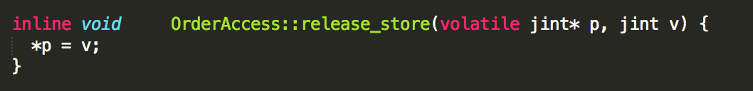 奇怪,在OrderAccess::release_store的实现中,第一个参数强制加了一个volatile,很明显,这是c/c++的关键字。