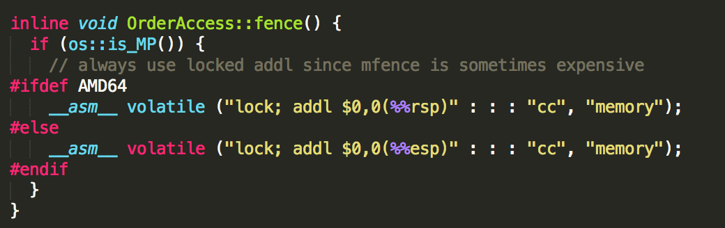 __asm__ volatile ("lock; addl $0,0(%%rsp)" : : : "cc", "memory");